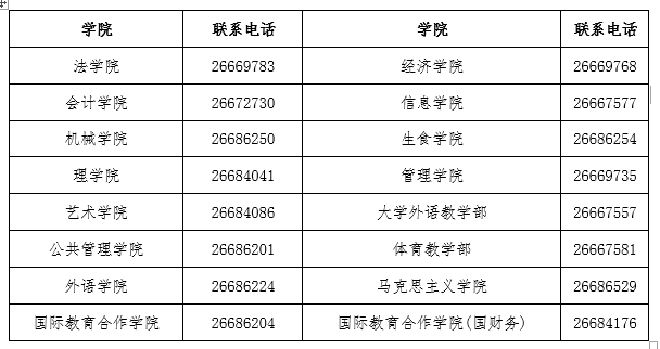 (三)往届生须与原所在学院联系确认本学期开考课程后,进行网上报名(详见各学院联系方式表)。