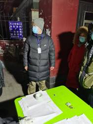 公法党支部谢斐老师,家住河西区,1月12日,按照所在街道安排,赴下河圈社区开展志愿服务。由于小区中老年人较多,因此他的工作重点是入户核酸筛查:挨家挨户告知筛查通知、登记人员信息、统计困难情况、协助入户核酸筛查。经历过一天的志愿服务,他不仅对工作流程进行了梳理和反思,并且更加深刻地体会到医护人员的不易,他表示:“防疫工作重于泰山,守土保疆人人有责。”