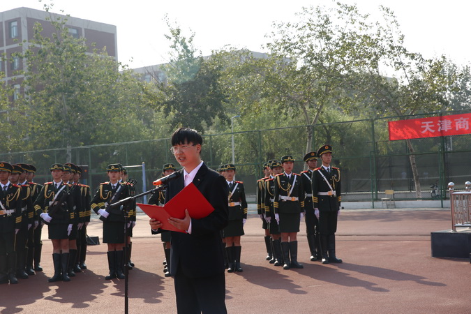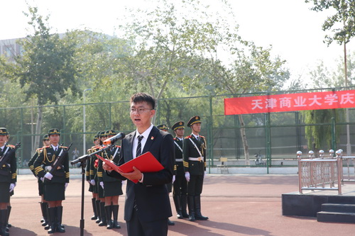 仪式上,本科生代表、管理学院工商管理类1904班安东,研究生代表、天津市“青马工程”第三期培训班学员、马克思主义学院2018级李晓霞分别发言。回顾新中国取得的辉煌成就,展望中华民族伟大复兴的美好未来。表示,要将小我融入祖国大我,用实际行动书写新时代的华章。校学生会向广大同学倡议:坚定理想信念,做志向远大的天商人;勤于学习实践,做勇挑重担的天商人;严于崇德修身,做引领风尚的天商人;勇立时代潮头,做善于创新的天商人,在实现中国梦的生动实践中放飞青春梦想。