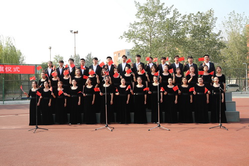 在校合唱团的领唱下,现场师生一起挥舞手中的国旗,高唱《我和我的祖国》,用歌声表达对祖国永远繁荣昌盛的美好祝愿。(审稿:辛佳澎)